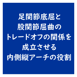 変形性股関節症 足関節底屈と股関節屈曲のトレードオフの関係を成立させる内側縦アーチの役割 今回は足関節底屈と股関節屈曲のトレードオフの関係を成立させる内側縦アーチの役割についてご紹介させていただきました. 今回の結果から考えるとトレードオフの関係を成立させるには内側縦アーチの役割が重要だと考えられます. 2025.09.21 変形性股関節症