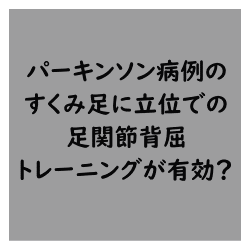 脳卒中 パーキンソン病症例のすくみ足に立位での足関節背屈トレーニングが有効? 今回はパーキンソン病症例のすくみ足に立位での足関節背屈トレーニングが有効なのかどうかを考えるうえで参考になる論文をご紹介させていただきました. 今回の結果から考えると足関節背屈トレーニングはすくみ足の改善に有効な可能性がありますね. 比較的簡単に導入できますのでトライしてみる価値はありますね. 2025.09.22 脳卒中