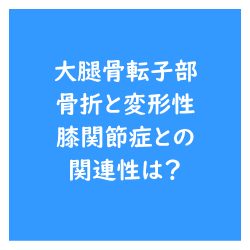 大腿骨近位部骨折 大腿骨転子部骨折と変形性膝関節症との関連性は? 今回は大腿骨転子部骨折と変形性膝関節症との関連性について考えるうえで参考になる論文をご紹介させていただきました. 今回の結果から考えると変形性膝関節症と大腿骨転子部骨折には関連がありそうですね. この研究結果のみから因果関係を推測するのは難しいですが… 2025.09.26 大腿骨近位部骨折