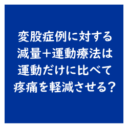 変形性股関節症 変形性股関節症例に対する減量+運動療法は運動だけに比べて疼痛を軽減させる?
